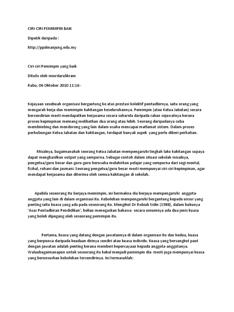 Ciri Ciri Pemimpin Yg Baik Pdf